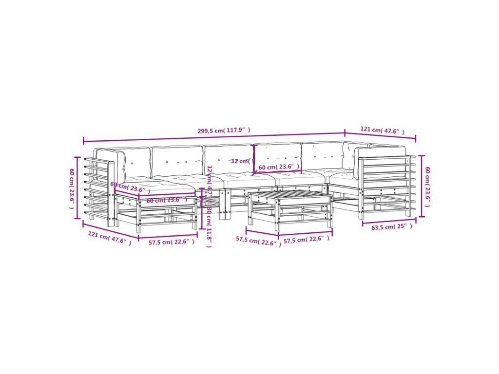 - Rozměry středové pohovky: 57,5 x 63,5 x 60 cm (D x Š x V)