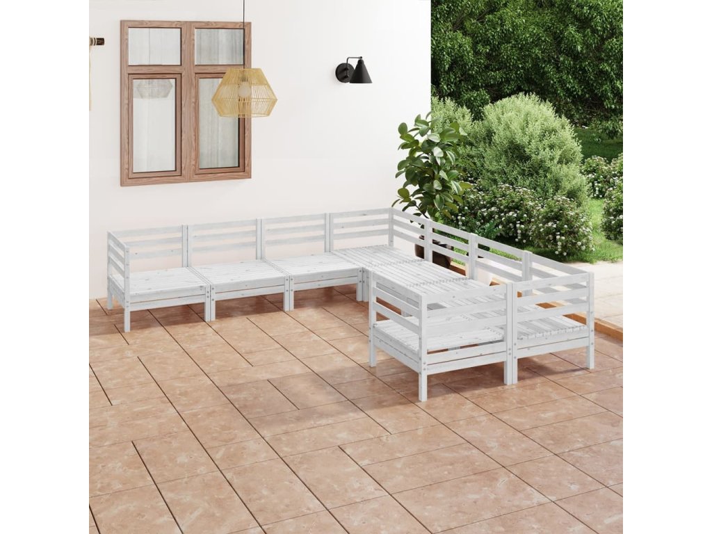 8dílná zahradní sedací souprava masivní borovice bílá