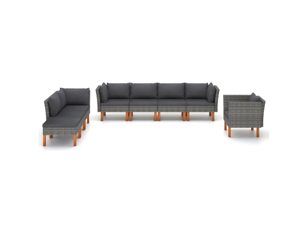 8dílná zahradní sedací souprava polyratan a eukalyptus šedá