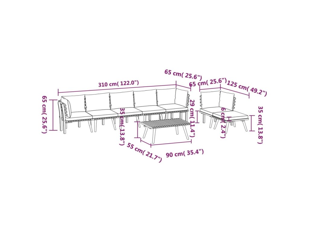 - Rozměry středové pohovky: 60 x 65 x 65 cm (Š x H x V)