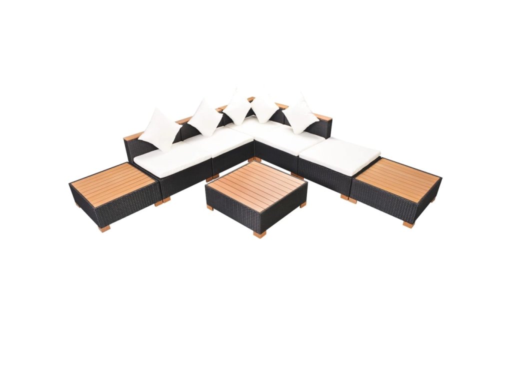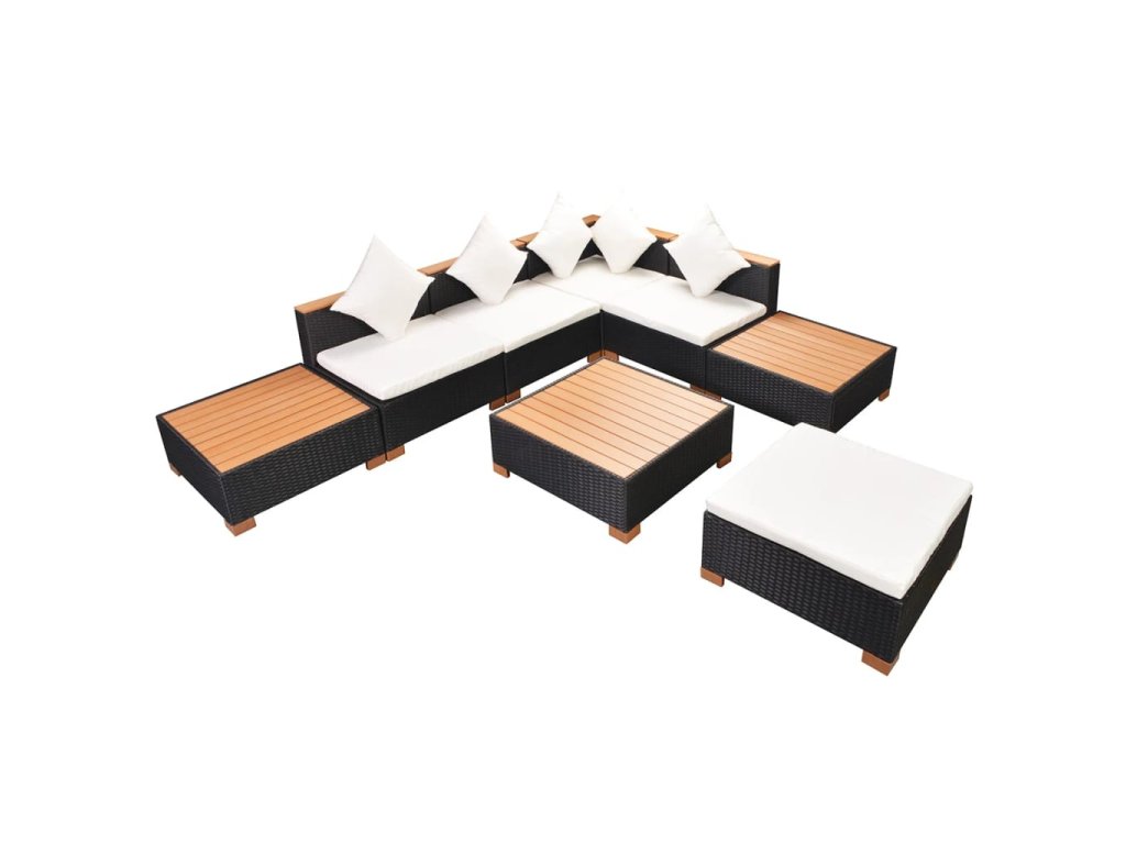 8dílná zahradní sedací souprava s poduškami polyratan černá