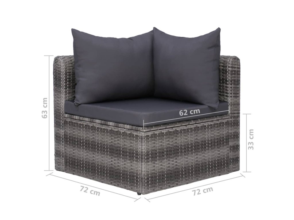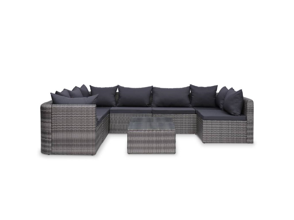 8dílná zahradní sedací souprava s poduškami polyratan šedá