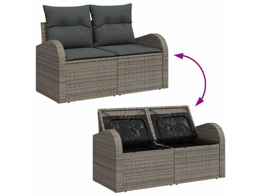Sada zahradních pohovek s úložištěm 8 pcs Šedá Poly ratan