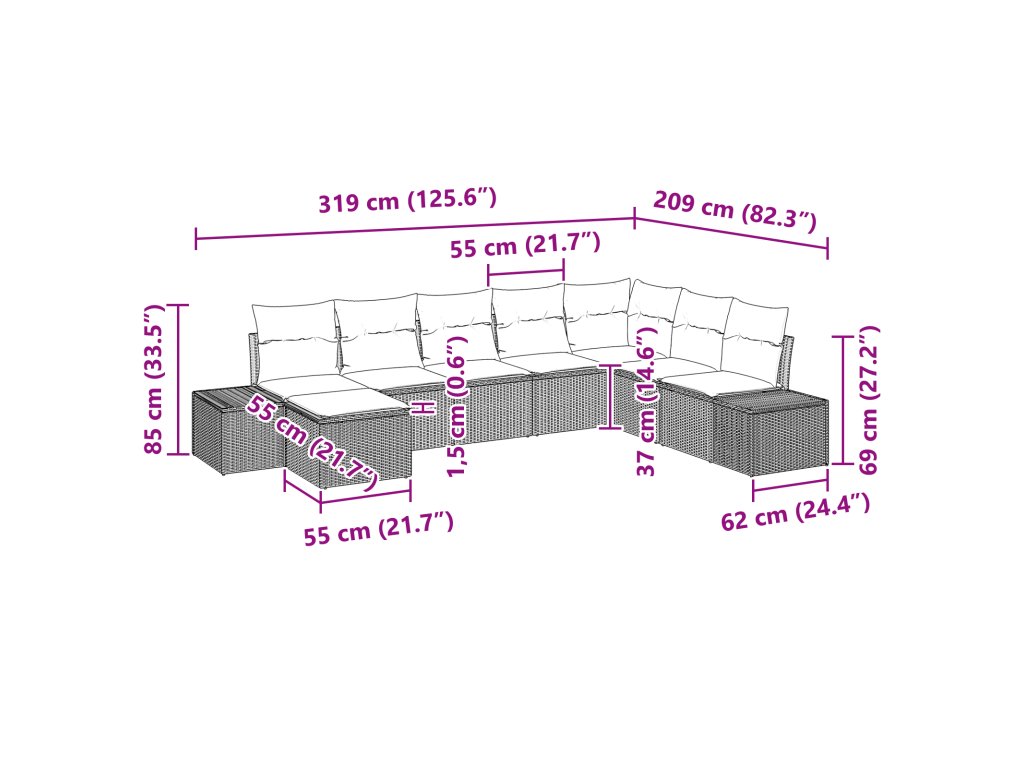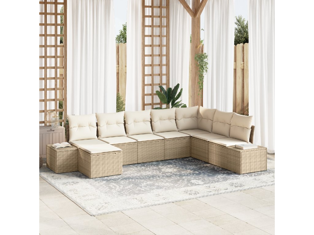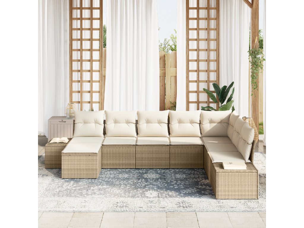 Sada zahradních pohovek s polštářem 8 pcs Béžová polyratan