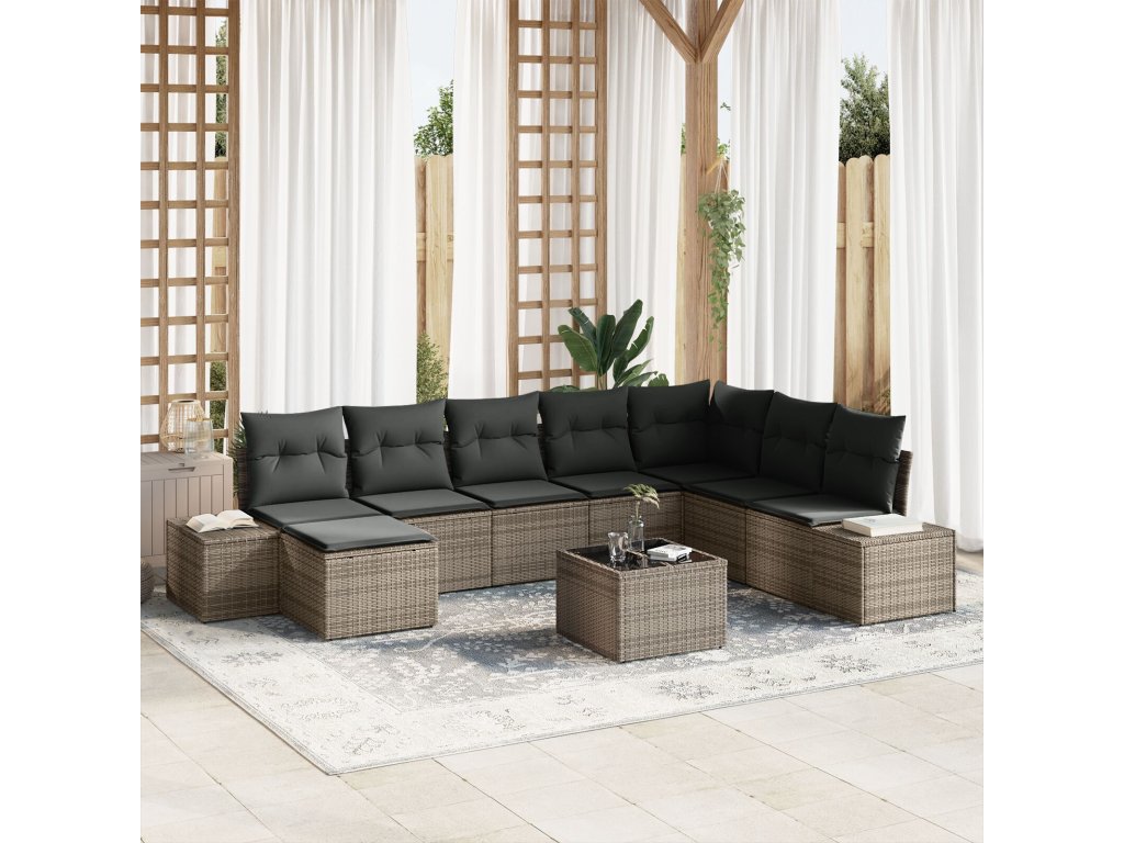 Sada zahradních pohovek s polštářem 9 pcs Světle šedá polyratan