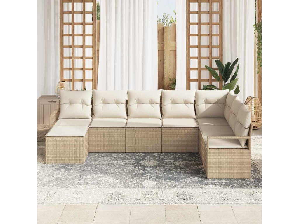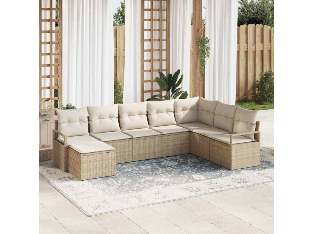 Set pohovek s polštářem 8 pcs Béžová a krémová polyratan