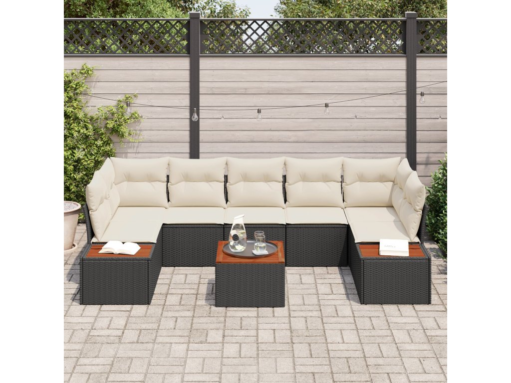 Sada zahradních pohovek s polštářem 8 pcs Černá Poly ratan