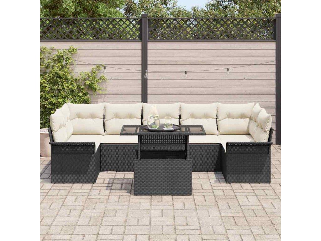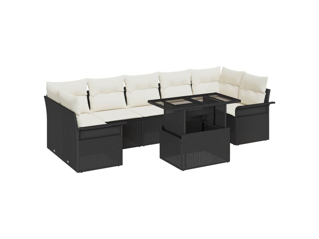 Sada zahradních pohovek s polštářem 8 pcs Černá Poly ratan