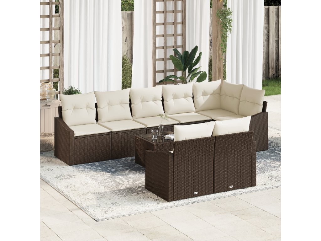 Set pohovek s polštářem 9 pcs Hnědá polyratan