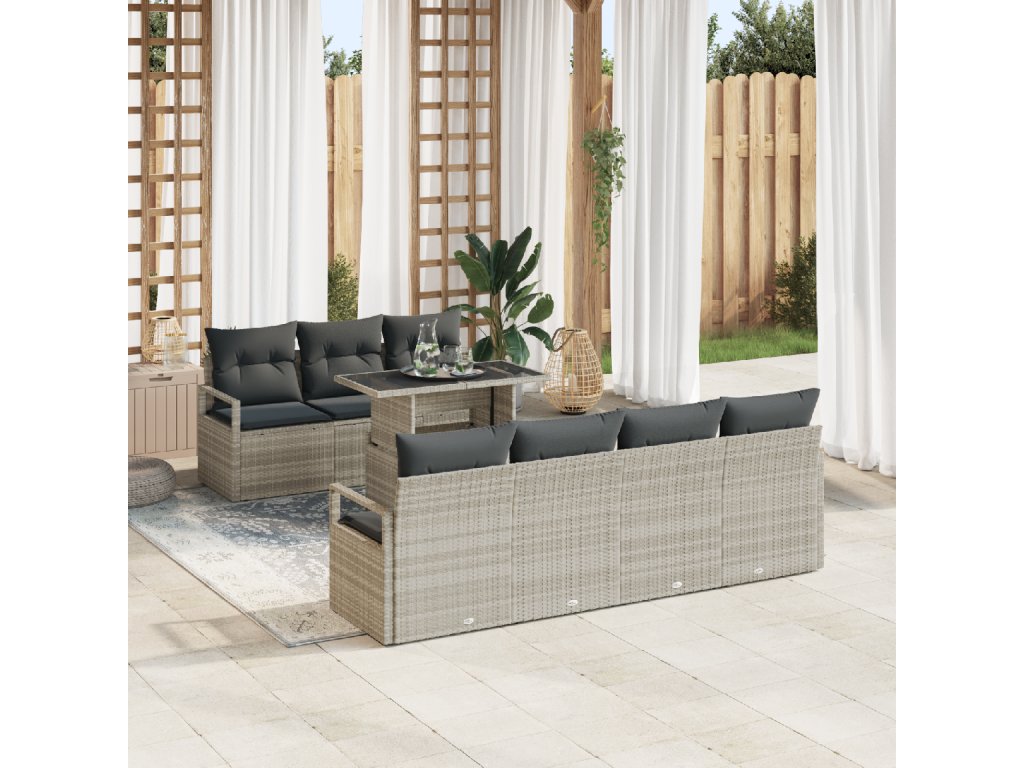 Sada zahradních pohovek s úložištěm 8 pcs Světle šedá polyratan