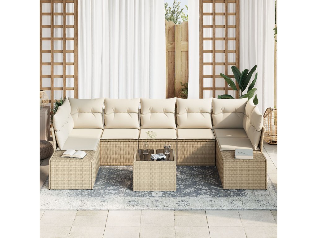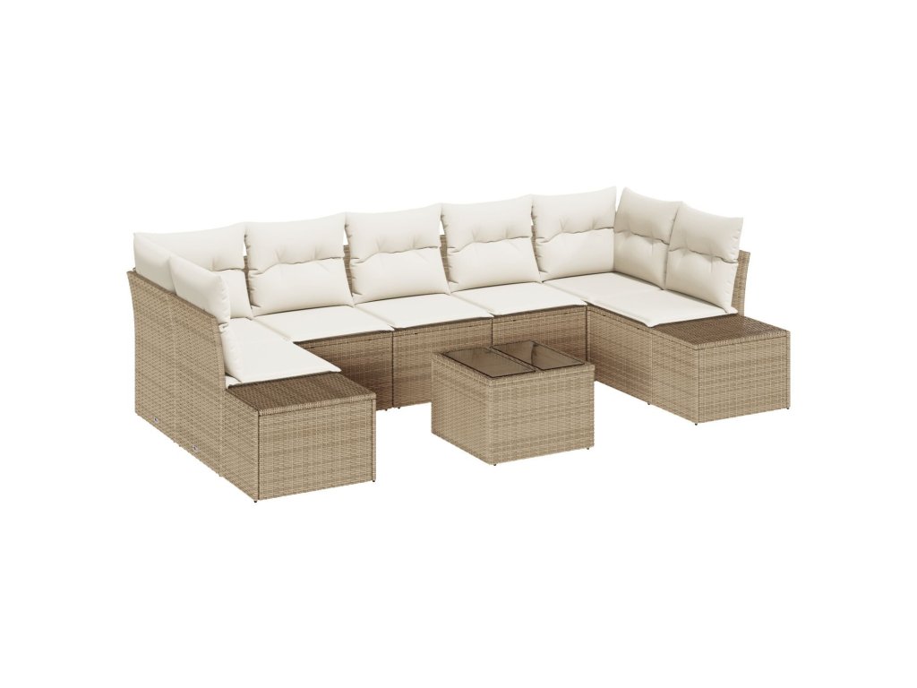 Sada zahradních pohovek s polštářem 8 pcs Béžová polyratan