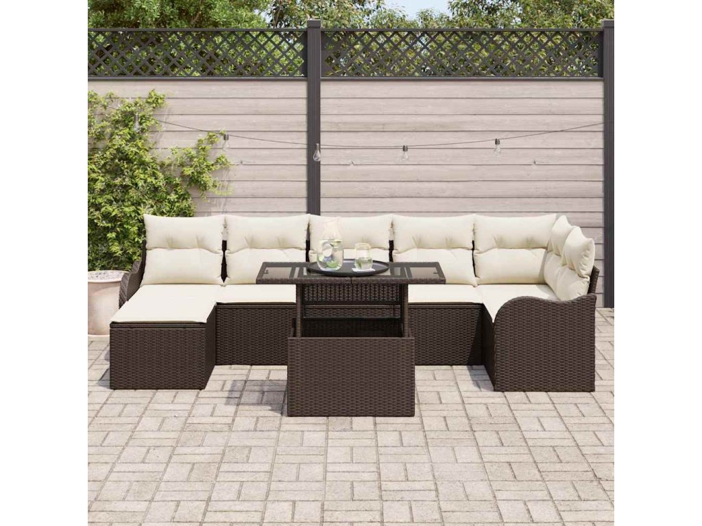 Sada zahradních pohovek s polštářem 8 pcs Hnědá Poly ratan