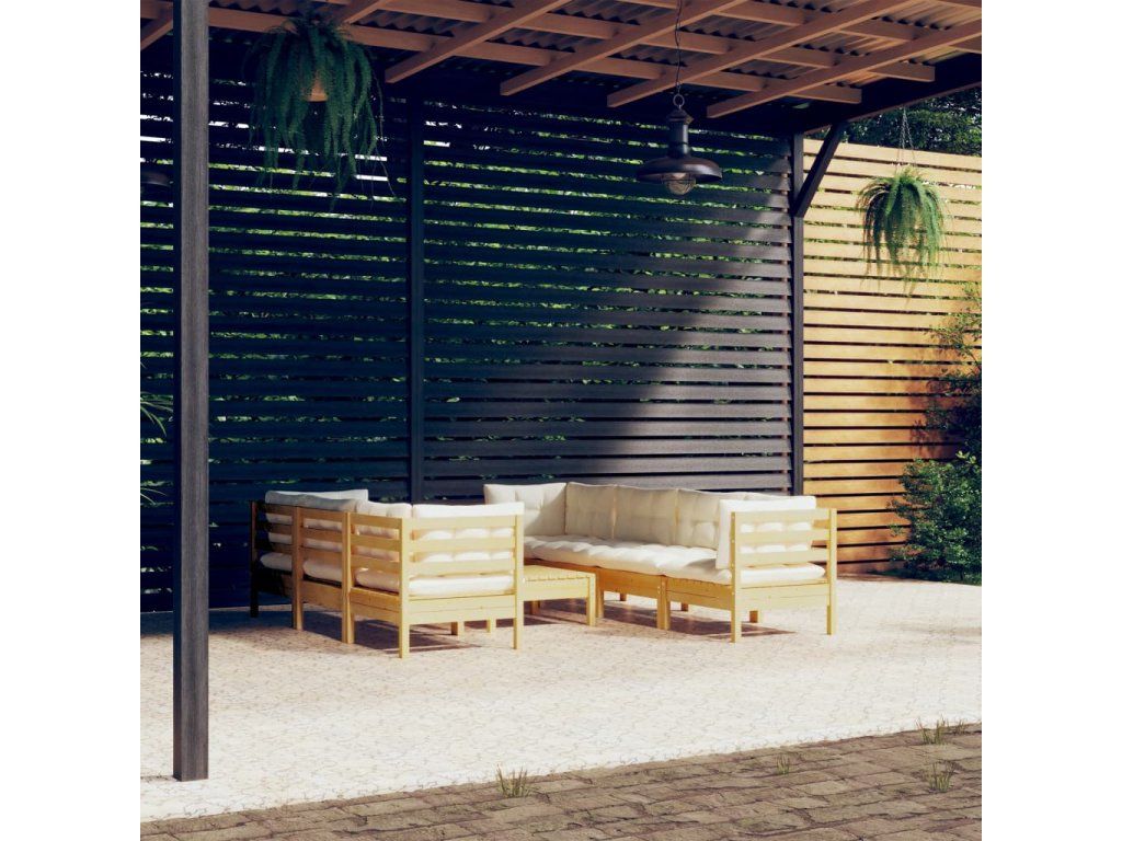 8dílná zahradní souprava krémové podušky masivní borovice 3096160