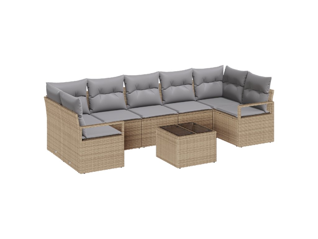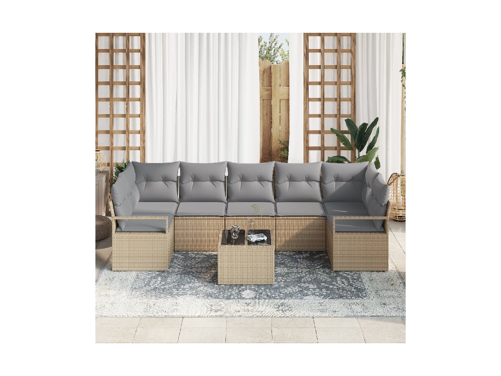 Kvalitní konstrukce z poly ratanu: Každý kousek je pečlivě vyrobený z poly ratanu, co odolává UV záření a i špatnému počasí. Moderní textura vypadá dobře v různých venkovních prostorách a prodlužuje životnost. Tento materiál zajistí, že nábytek pořád vypadá jako nový. Víceúčelové komponenty: Set obsahuje dvě rohová sedadla, tři středová sedadla, dvě pohovky s opěrkami a jeden stůl. Každý prvek se dá přizpůsobit podle potřeby a počtu hostů. Stůl z tvrzeného skla je nejen praktický, ale i stylový, ideální k setkání nebo relaxaci. Pohodlné a odnímatelné polštáře: Set má polštáře s pěnovou výplní, co drží v poly ratanu. Díky zipu je snadno sundáte a udržujete. To se hodí při sezónních změnách a zajišťuje pohodlí a jednoduchost při údržbě. Ideální venkovní použití: Tento set je skvělý pro zahrady nebo terasy, dodává komfort a styl, ať už máte rodinné oslavy nebo větší akce. Modulární design přizpůsobí se každé příležitosti. Bezproblémová údržba: Údržba je super jednoduchá; stačí jen utřít a zakrýt, když se nepoužívá, aby zůstal v top stavu. Takhle se zajišťuje připravenost na spontánní sezení venku a péče se postará o dlouhou životnost.- Barva: Beige a šedá
