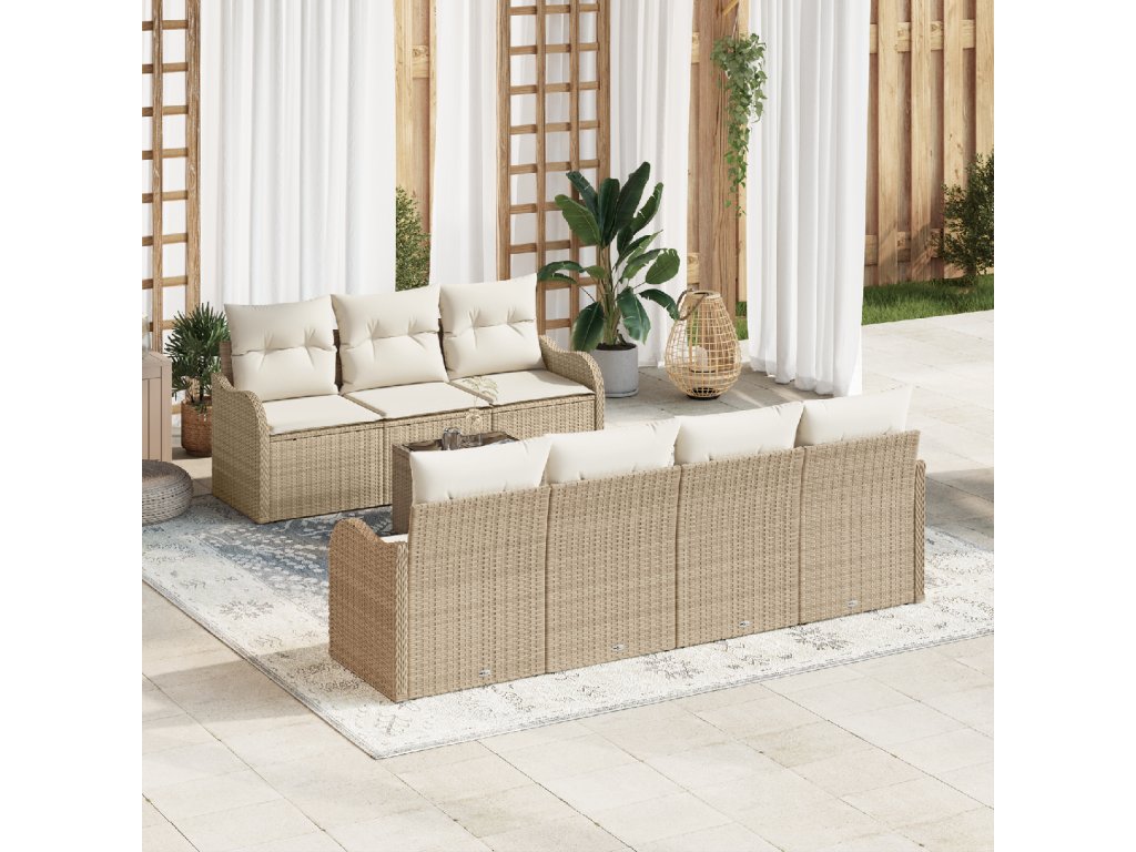 Sada zahradních pohovek s polštářem 8 pcs Béžová a krémová