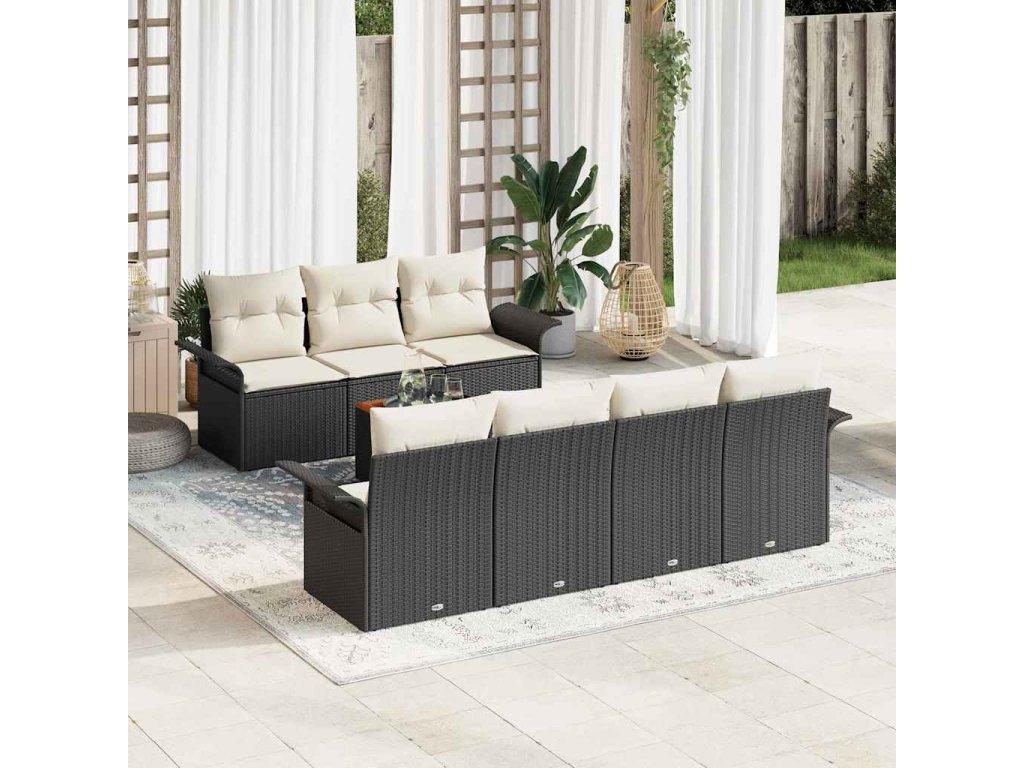 Sada zahradních pohovek s polštářem 8 pcs Černá a krémová