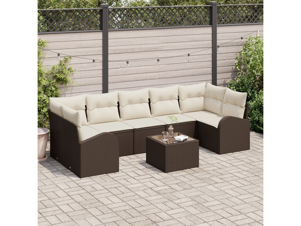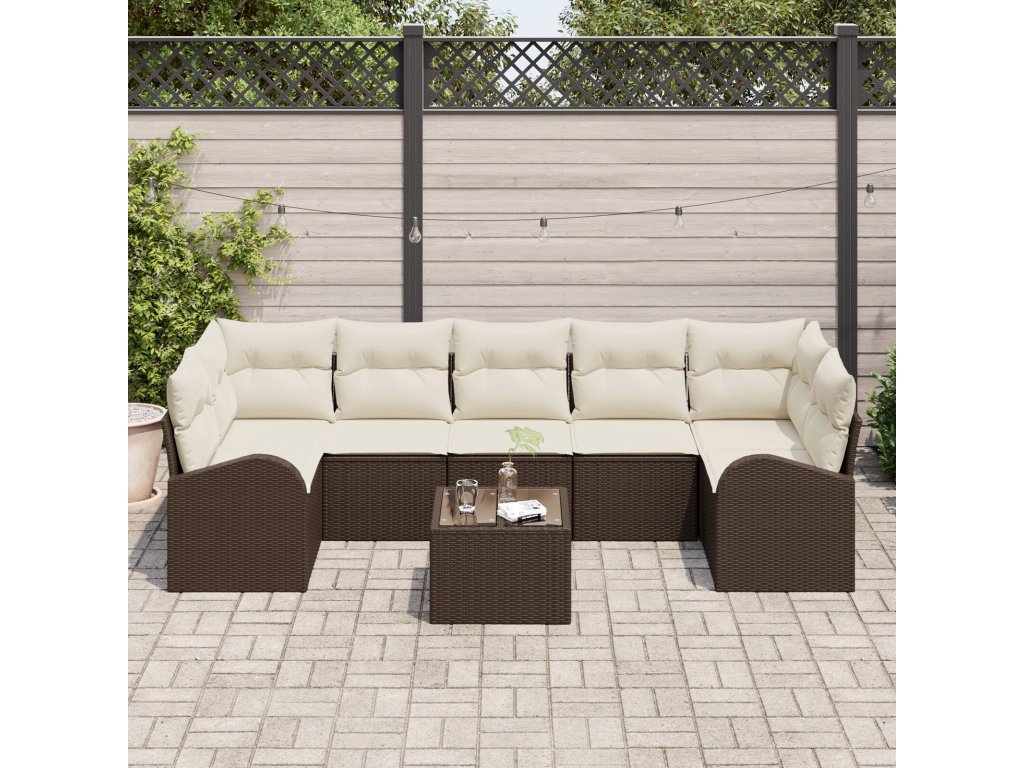 Vysoce kvalitní materiály: Tento zahradní pohovkový set z poly ratanového materiálu vypadá elegantně a je odolný. Je UV-odolný a snáší drsné venkovní podmínky. Robustní nohy z práškově potažené oceli zajišťují stabilitu pro dlouhodobé používání, takže všechno krásně ladí a vy vytvoříte funkční prostor pro venkovní lenošení. Komponenty a design: Set obsahuje dvě rohové sedačky, tři středové sedačky, dvě pohovky s opěrkami a čtvercový stůl s tvrzeným sklem. Komponenty jsou navrženy pro pohodlí a snadné přizpůsobení různým sociálním potřebám. Elegantní poly ratanové opěrky rukou a reprezentativní zadní panely dodávají designu šmrnc. Výjimečné vlastnosti: Lehký set je snadno přenosný, s modulárním designem pro různá uspořádání. Potahy s polyesterovým plněním zaručují pohodlí, zatímco stůl s tvrzeným sklem je silný a snadno se čistí. Univerzální použití: Ideální pro terasy, zahrady a balkony, tento set nabízí možnost relaxace a variabilitu pro každou příležitost. Je skvělý pro letní večírky nebo klidné večery a hodí se jak pro domovy, tak pro pohostinské prostory. Tipy na údržbu: Udržujte set v dobrém stavu otíráním vlhkým hadříkem a zakryjte ho, když není používán. Odnímatelné potahy polštářů můžete prát, což usnadňuje jejich údržbu a zajišťuje, že set bude stále vypadat stylově po celou sezónu.- Barva: Hnědá