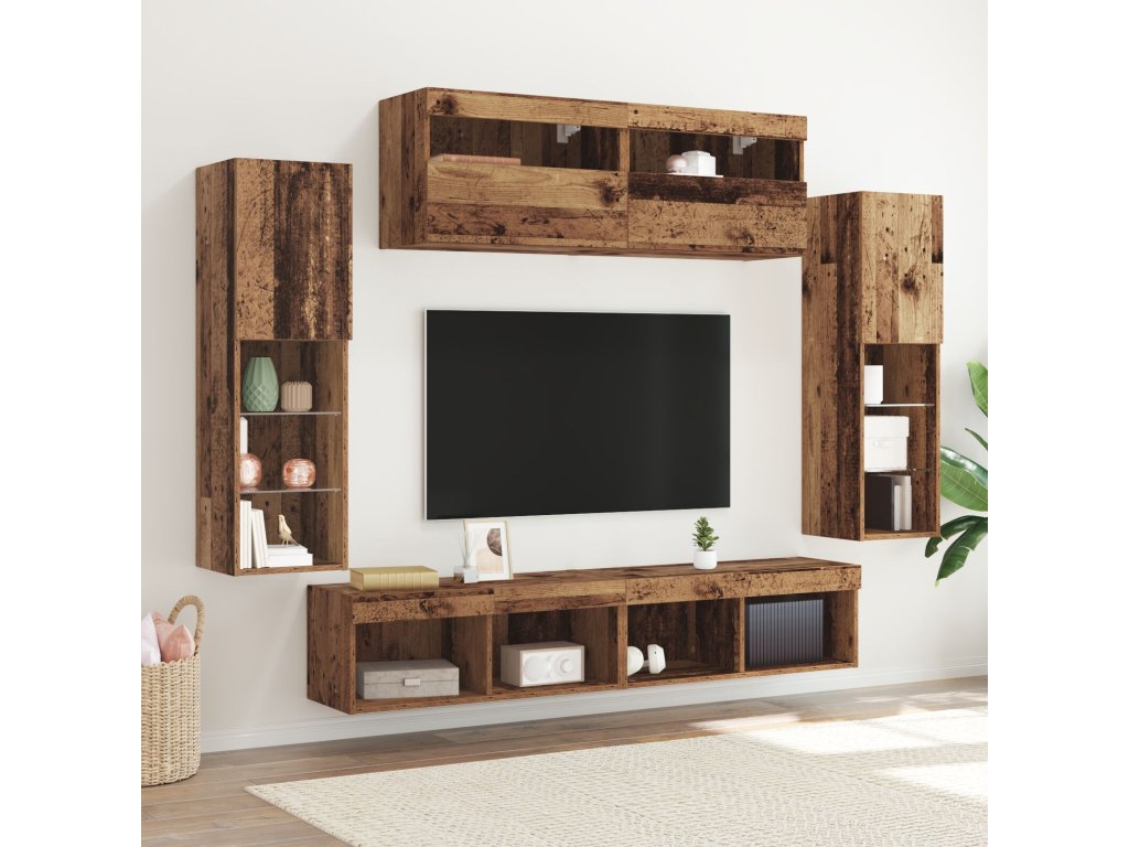 Sestava TV skříněk Nástěnný 6 pcs Staré dřevo Kompozitní dřevo
