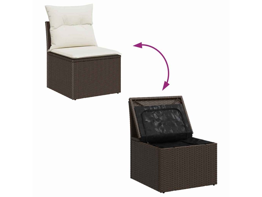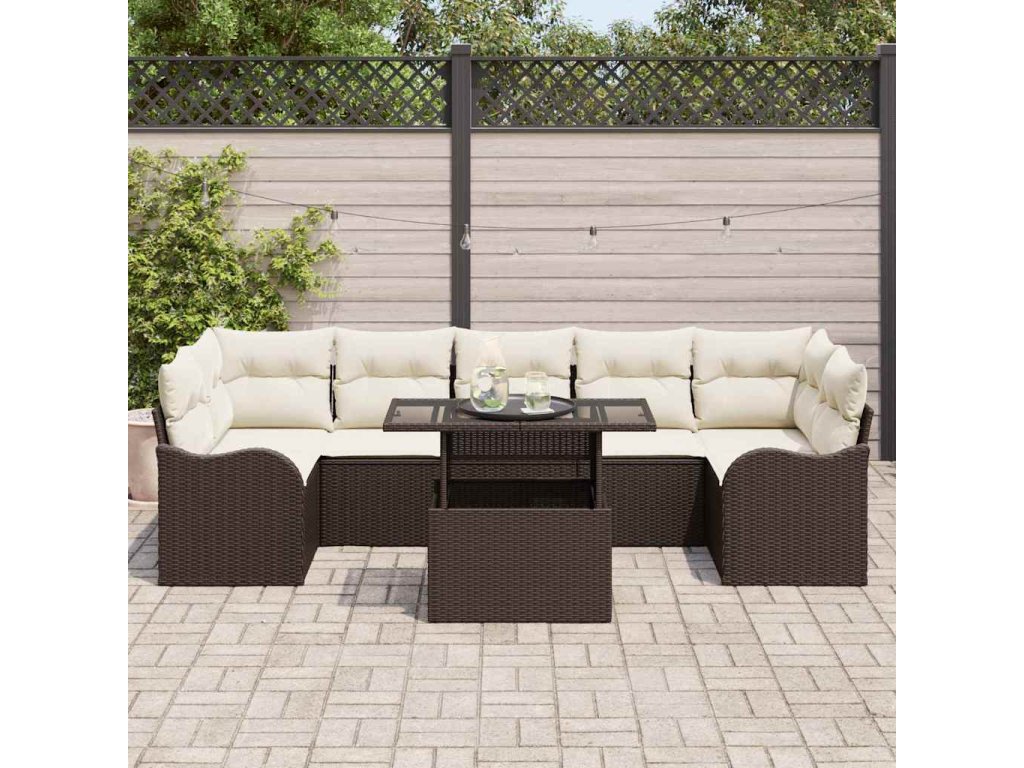 Sada zahradních pohovek s polštářem 8 pcs Hnědá Poly ratan