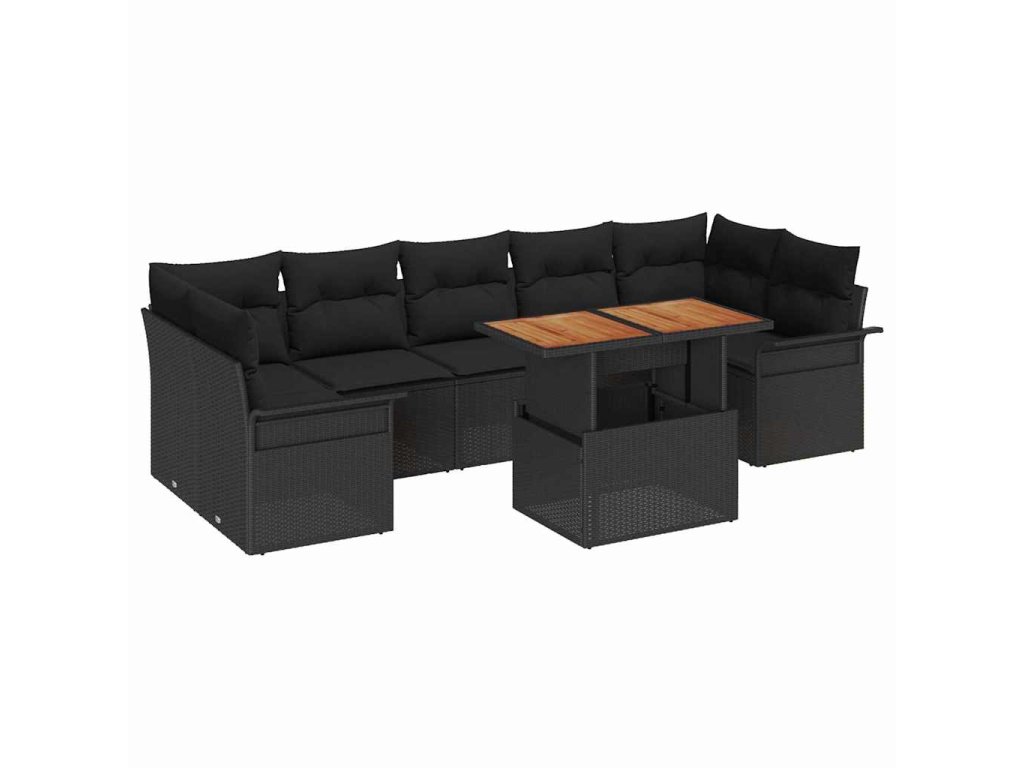 Sada zahradních pohovek s úložištěm 8 pcs Černá Poly ratan