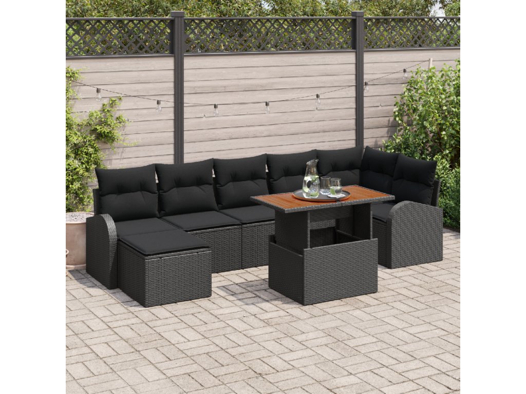Sada zahradních pohovek s polštářem 8 pcs Černá