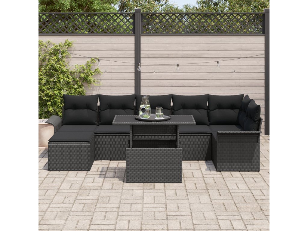 Sada zahradních pohovek s polštářem 8 pcs Černá Poly ratan