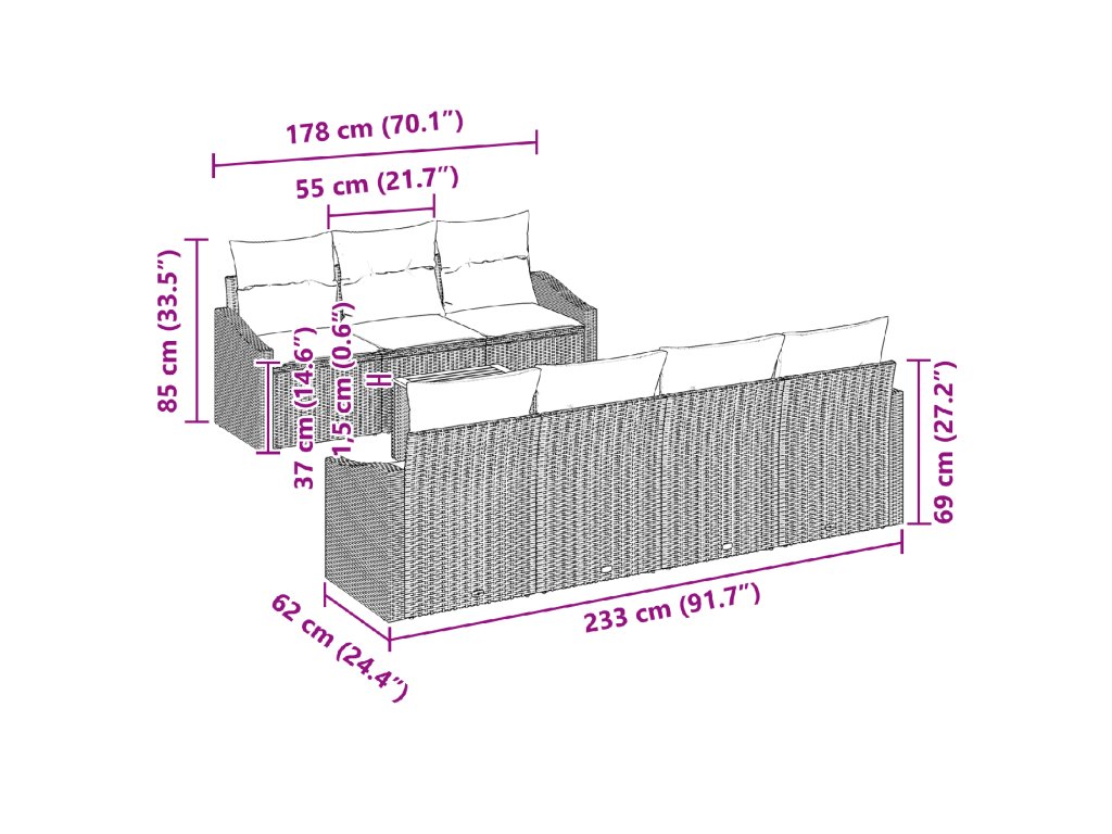 Sada zahradních pohovek s polštářem 8 pcs Béžová Poly ratan