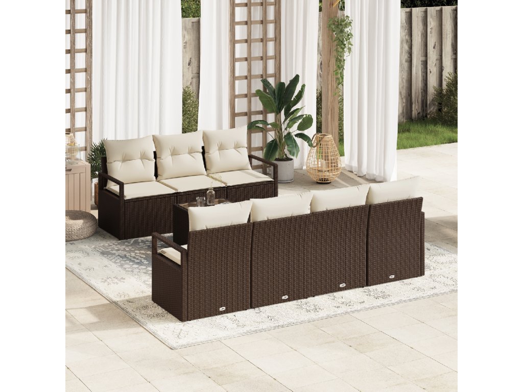 Set pohovek 8 pcs Hnědá a krémová polyratan