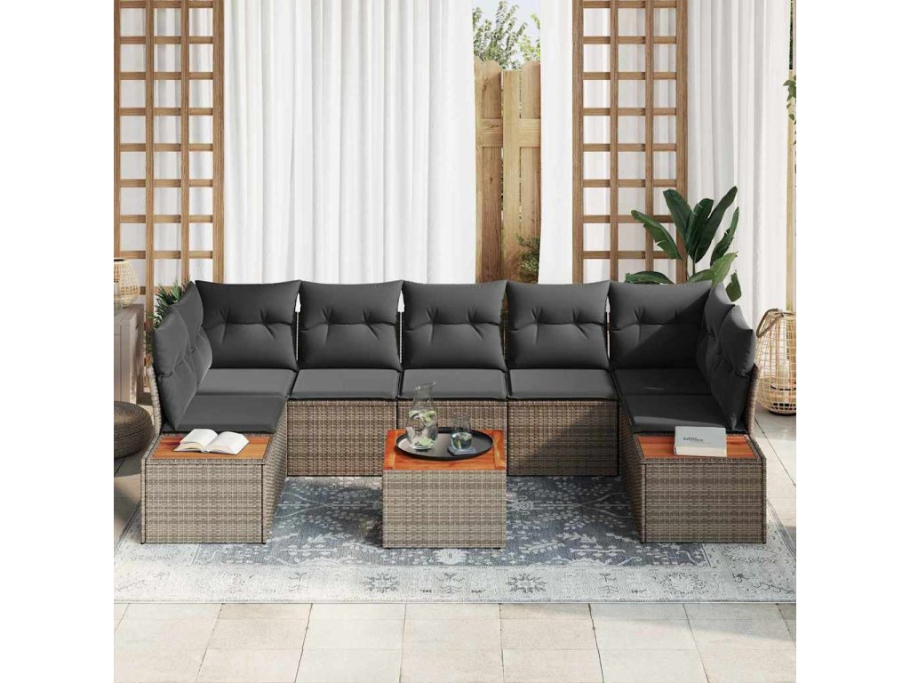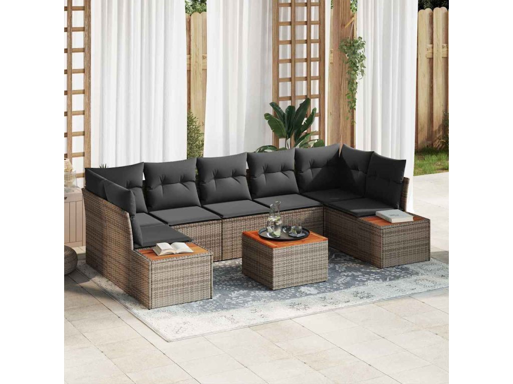Sada zahradních pohovek s polštářem 8 pcs Šedá Poly ratan
