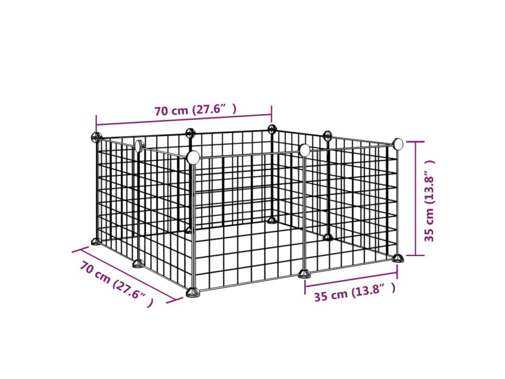 8dílná klec pro domácí mazlíčky černá 35 x 35 cm ocelová