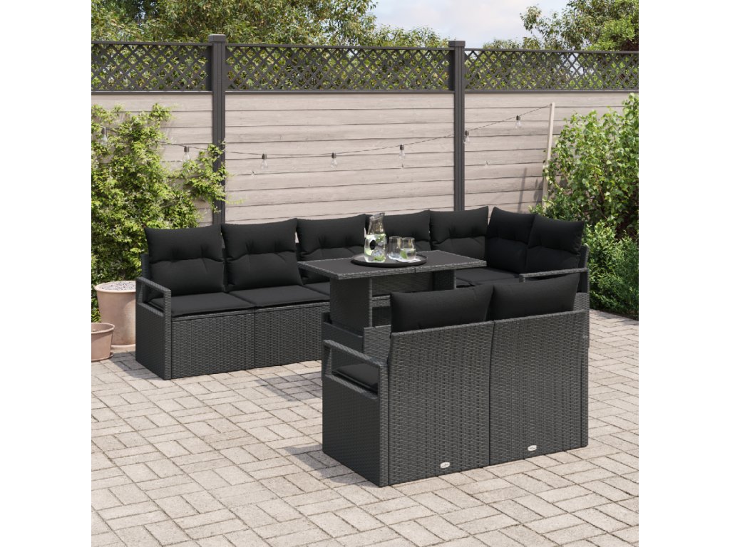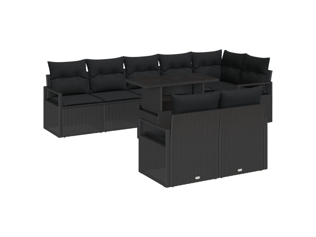 Sada zahradních pohovek s polštářem 9 pcs Černá polyratan