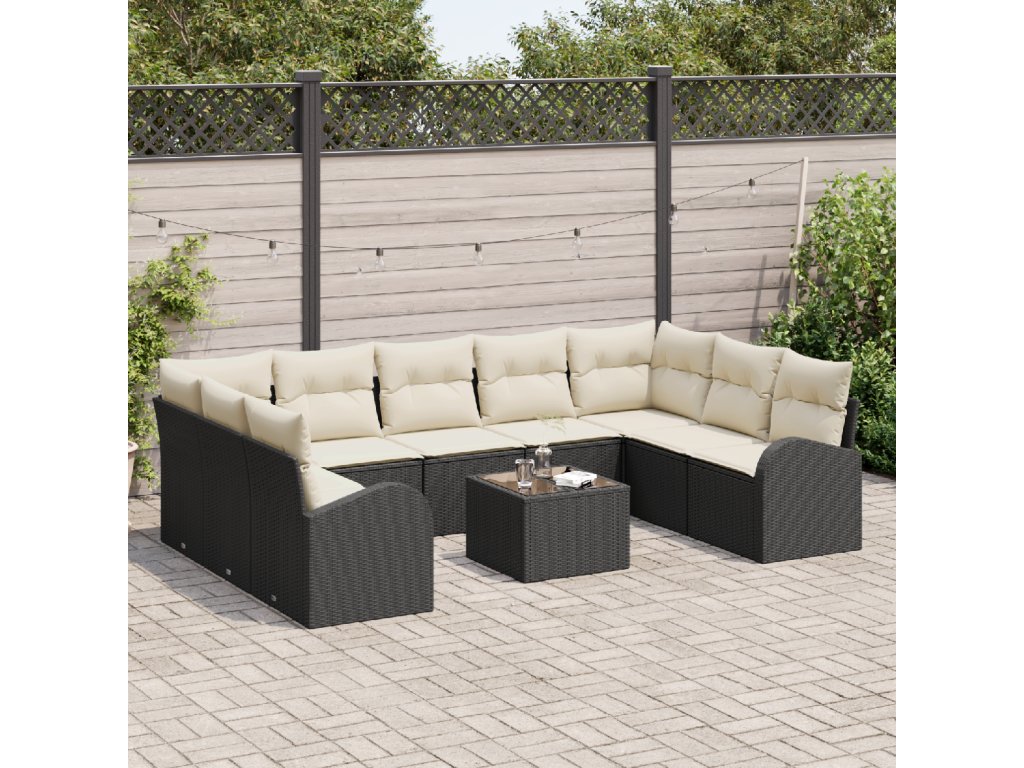 Set pohovek s polštářem 10 pcs Černá a bílá polyratan