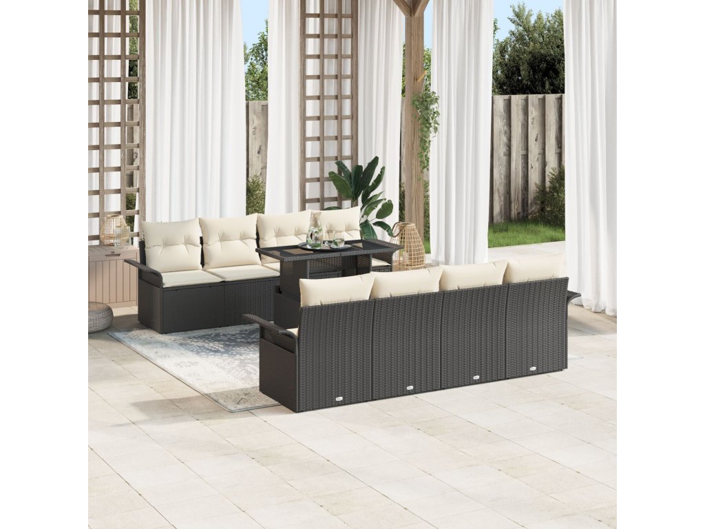 Sada zahradních pohovek s polštářem 9 pcs Černá Poly ratan