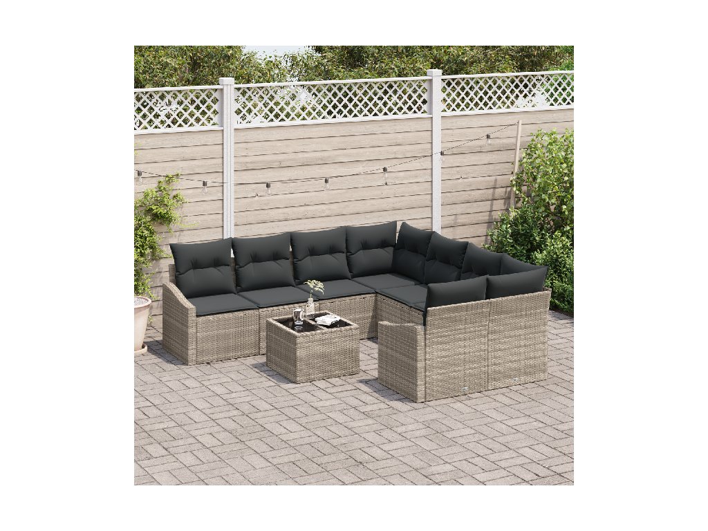 Set pohovek s polštářem s polštářem 9 pcs Světle šedá polyratan