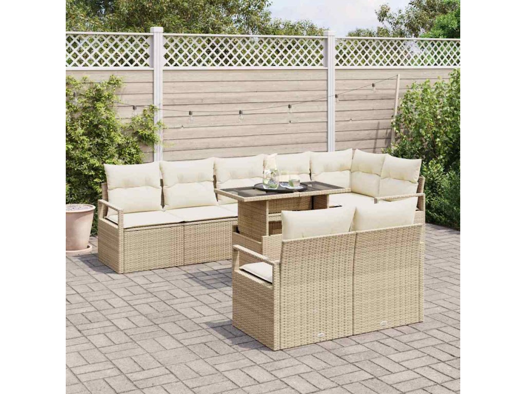 Sada zahradních pohovek s úložištěm 9 pcs Béžová Poly ratan