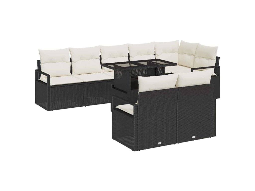 Sada zahradních pohovek s úložištěm 9 pcs Černá Poly ratan