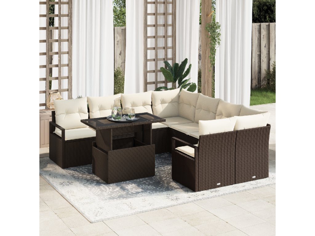 Sada zahradních pohovek 9 pcs Hnědá a krémová polyratan