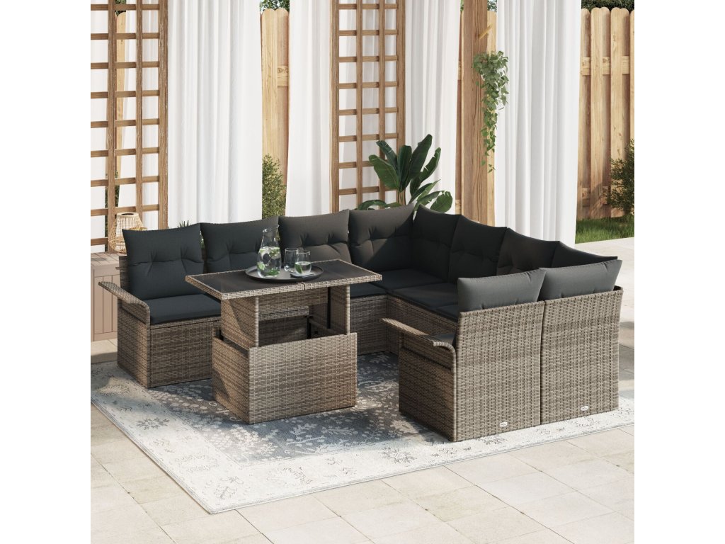 Sada zahradních pohovek s polštářem 9 pcs Šedá polyratan