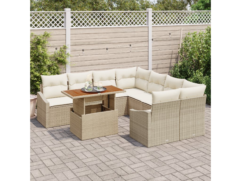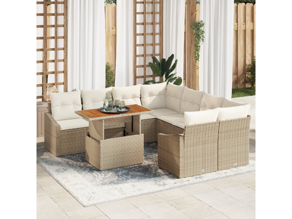 Prémiové materiály: Vyrobeno z odolné oceli s práškovým lakováním, poly ratanu a masivního akáciového dřeva, tato jídelní sada zajišťuje trvanlivost a odolnost vůči UV záření a počasí. Vysoce kvalitní materiály nabízejí harmonickou kombinaci síly a elegance, což ji činí ideální pro venkovní použití. Úložná funkčnost: Pečlivě navrženo s integrovanými úložnými prostory v područkách, rohových a středových sedadlech, nabízí praktické řešení pro organizaci polštářů a dalších nezbytností. Tato funkce přidává pohodlí, což činí ideální pro uklizené venkovní prostory. Modulární variabilita: Modulární prvky jídelní sady umožňují různá uspořádání. Snadno upravte rozložení podle potřeb, ať už jde o útulnou večeři nebo velké setkání, zajišťující flexibilitu a zlepšující zážitek. Čtvercové opěrky rukou: S geometrickými, rovnými rameny vyrobenými z poly ratanu, poskytující praktickou podporu a estetickou hodnotu. Tento promyšlený design přispívá k celkovému pohodlí a stylu, vyzývá k relaxaci a interakci. Péče o výrobek: Chraňte svou sadu voděodolným krytem a otírejte povrchy akáciového dřeva vlhkým hadříkem, abyste udrželi jejich krásu. Dodržováním těchto jednoduchých kroků zůstane vaše jídelní sada zářivá a připravená k použití.- Barva: Béžová a krémová