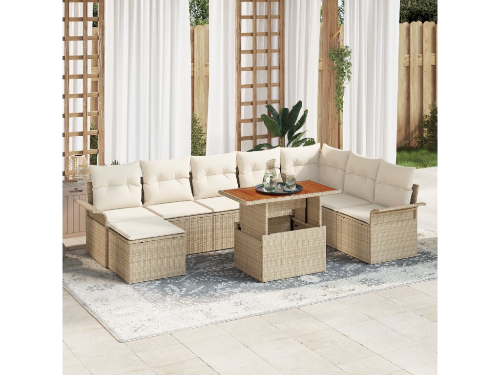 Sada zahradních pohovek s polštářem 9 pcs béžová a krémová