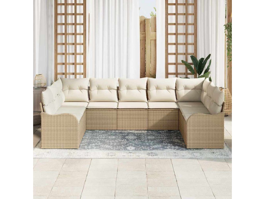 Sada zahradních pohovek s úložištěm 9 pcs Béžovo-bílá polyratan