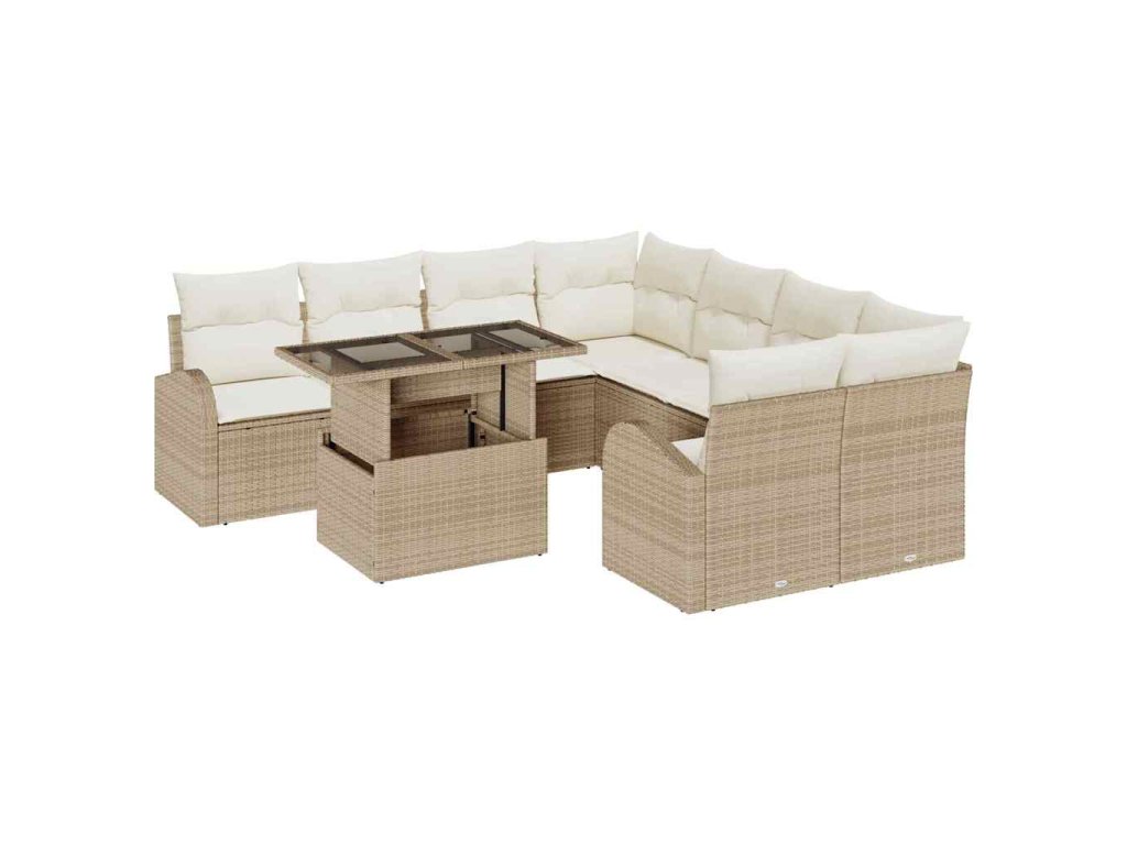 Sada zahradních pohovek s polštářem 9 pcs Béžová Poly Ratan
