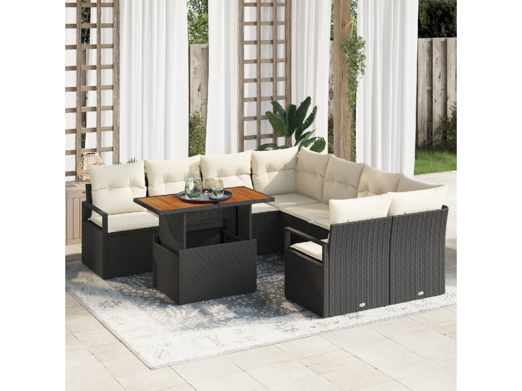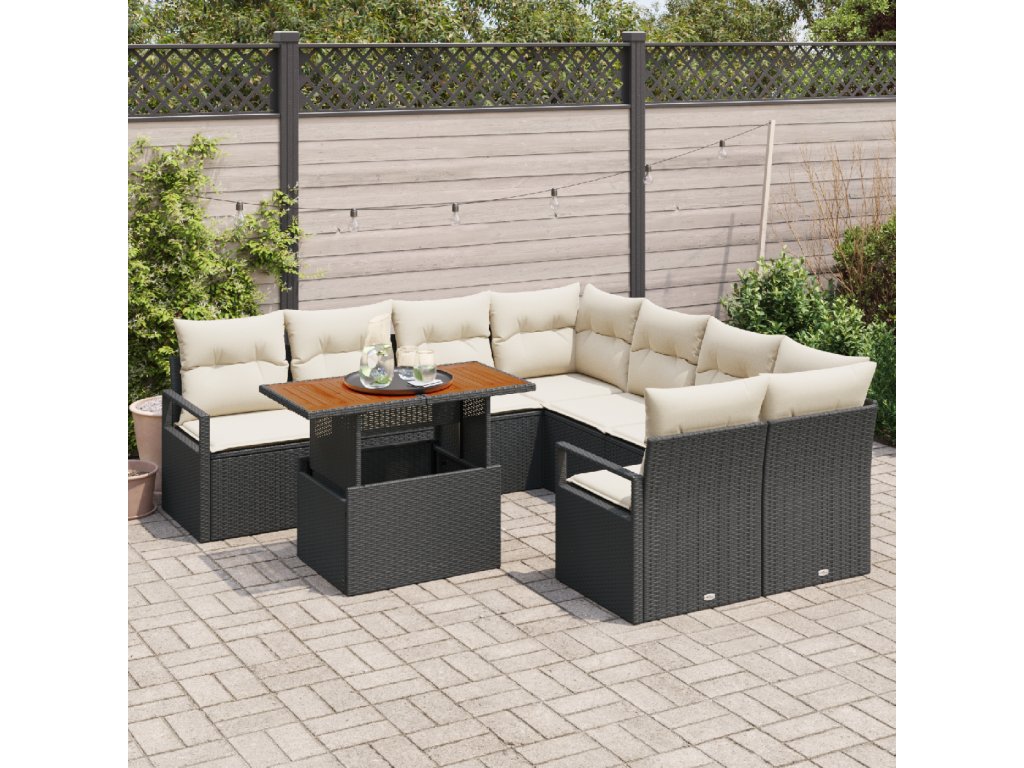 Zahradní jídelní souprava s polštářem 9 pcs Černá a krémová