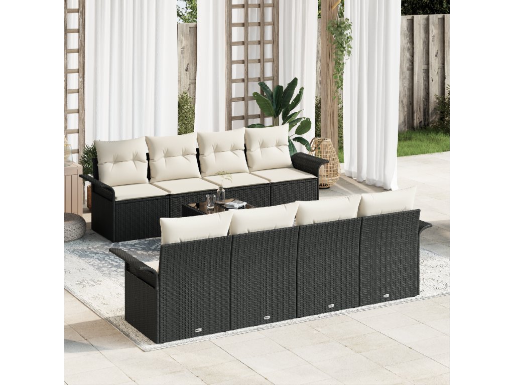 Sada zahradních pohovek 9 pcs Černá a krémová polyratan