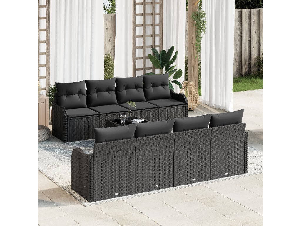 Materiálová excelence: Set je vyrobený z odolného poly ratanu, což zajišťuje odolnost vůči počasí a dlouhou životnost bez nutnosti velké údržby. Práškově lakovaná ocel dodává stabilitu a skvělý vzhled. Povrch ze skla navíc dělá set vhodný na venkovní posezení nebo neformální relaxaci. Zaměřené komponenty: Set má pohodlné tenké sedáky a zakřivené opěrky z poly ratanu, které kombinují podporu a eleganci. Skrytá úložná přihrádka šikovně schovává nezbytnosti a dobře zpracované záda udržují pro sebe hezký vzhled ze všech stran. Variabilní vlastnosti: Designované pro všestranné použití, pohovka může být jednoduše upravena podle různých konfigurací. Lehkost materiálu zajišťuje snadné přesouvání a UV-odolné prvky vydrží sluneční paprsky. Různé využití: Od zahradních party po klidné chvíle, set se hodí do různých venkovních prostředí. Ať už ho dáte na terasu, k bazénu nebo do slunečného koutku, nábytek dodá prostoru pohodu a styl. Péče o nábytek: Pro uchování kvality je dobré používat ochranné kryty, když se set nepoužívá. Tím snadno prodloužíte jeho životnost. I přes robustní konstrukci vám tyhle jednoduchý péče pomůžou udržet nábytek krásný a funkční po celou sezónu.- Barva: Černá
