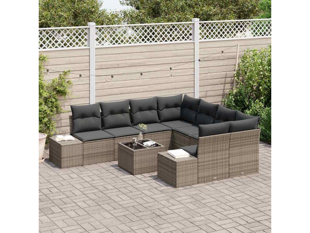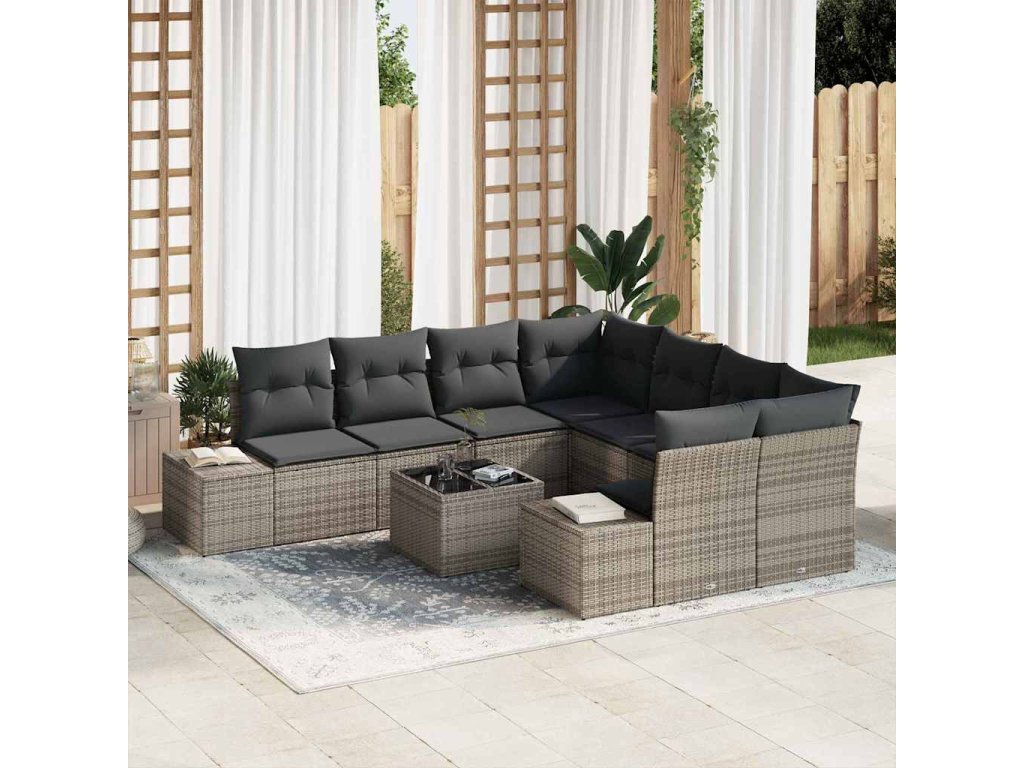 Sada zahradních pohovek s polštářem 9 pcs Šedá polyratan