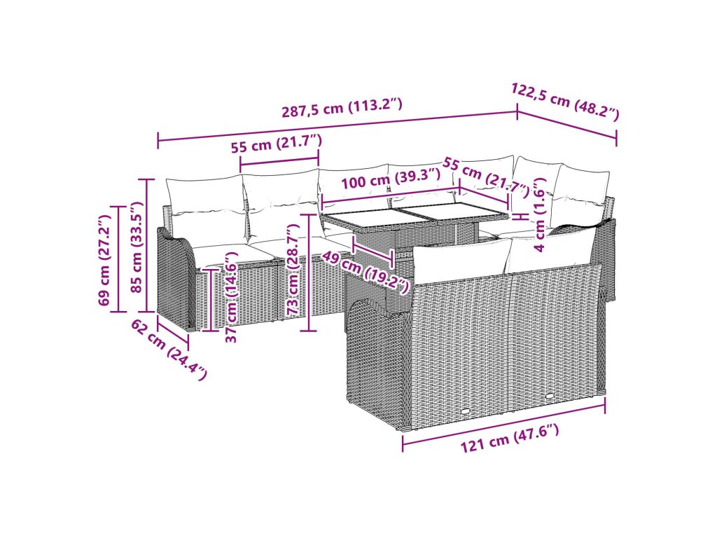 Odpočinková sada s polštářem 9 pcs Šedá Poly ratan