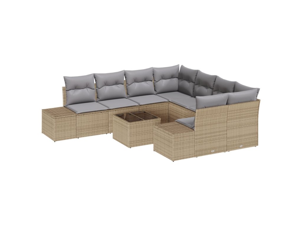 Sada zahradních pohovek s polštářem 9 pcs Béžová polyratan