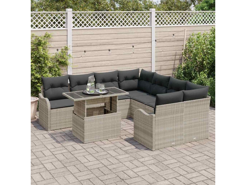 Sada zahradních pohovek 9 pcs Světle šedá Poly Ratan