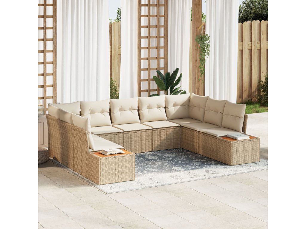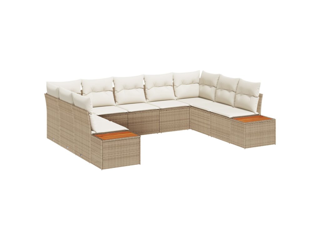 Sada zahradních pohovek s polštářem 9 pcs Béžová Poly ratan